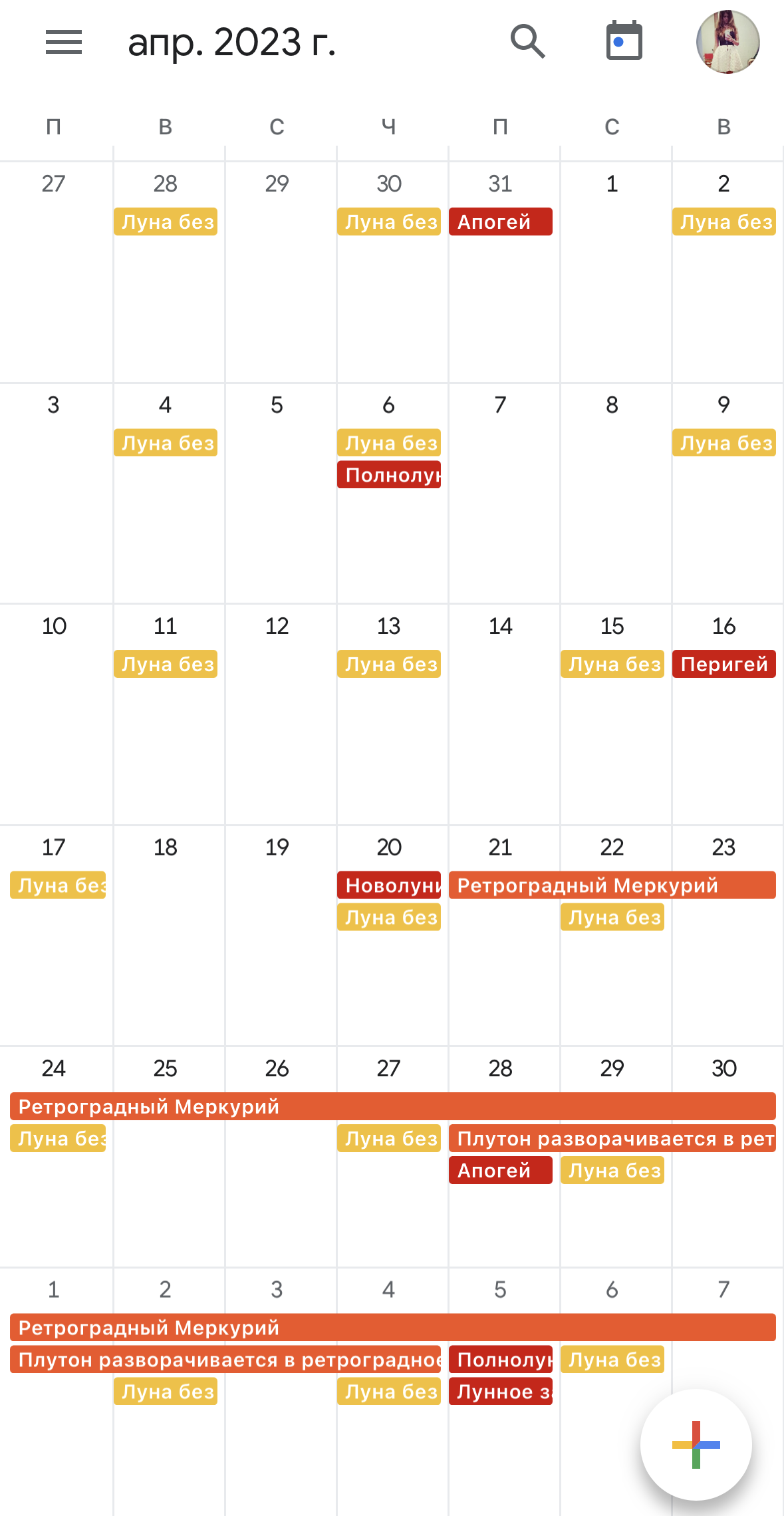 Вы получите доступ к моему астрологическому Гугл-календарю, в котором указаны все периоды Луны без курса, особо эмоциональные дни, а также ретроградные планеты. Время всех событий будет автоматически переведено на ваш часовой пояс.